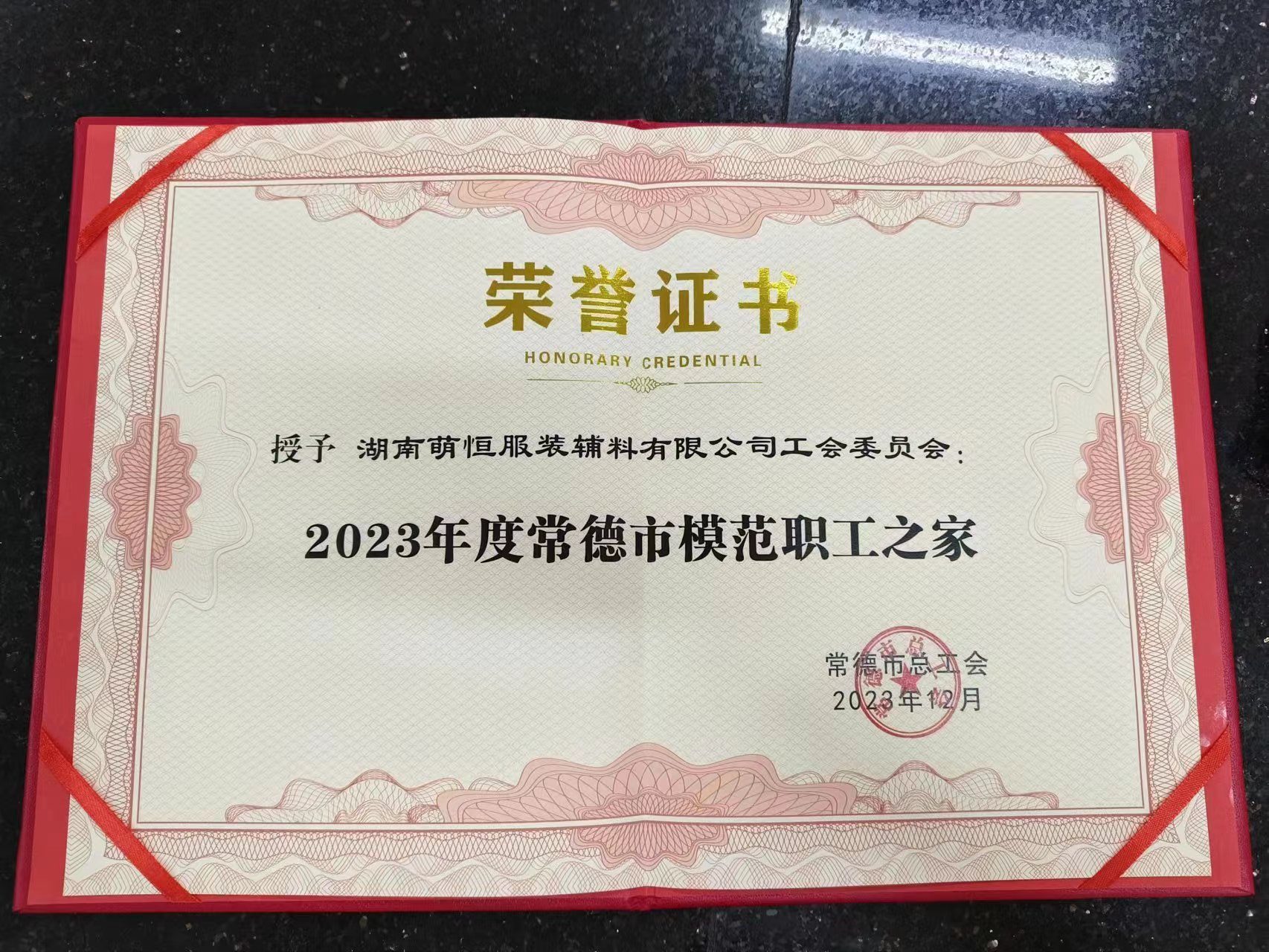 湖南萌恒榮獲“2023年度常德市模范職工之家”