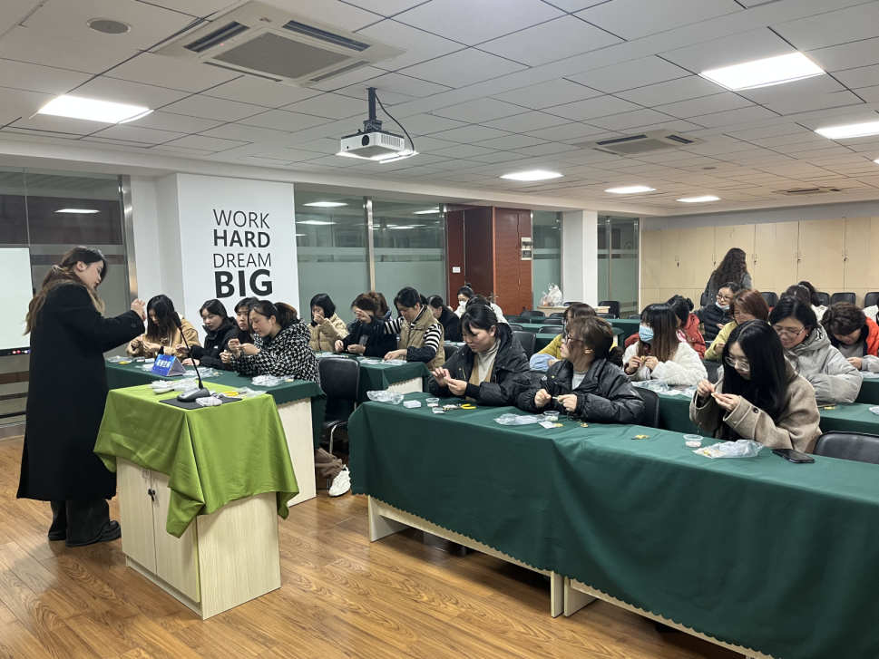 春光明媚,情暖三月。為了慶祝第114個“三八”國際婦女節的到來,萌恒各事業部組織了精彩紛呈的活動,向女員工們致以節日的問候和誠摯的祝福。 國貿事業部 -part 1- 3月8日一大早,國貿事業部四位帥氣的小伙子拿著鮮花、蛋糕和節日禮品來到女員工的工位上,為她們送上了節日的第一波驚喜。女同胞們一上班就收到禮物表示非常驚喜,臉上都洋溢著笑容,紛紛拍照發朋友圈,和家人朋友們一同分享喜悅。 -part 2- 一絲一縷的彩線,編織成了這個多姿多彩的世界。中午,國貿事業部特選公司產品——冰島毛線,組織開展了“多姿多彩,同心織夢”DIY編織活動。80余名女員工報名參加了這個別具意義的手工活動,現場十分火爆。 活動伊始,老師講解了手提包的編織方法和技巧,并帶領大家一步一步進行編織。對于大多數參與者而言,這是第一次接觸冰島毛線編織。但在老師的引導和姐妹的幫助下,大家很快掌握了基本方法,五顏六色的彩線在手中來回穿梭。 經過近1小時的編織,精美可愛的手提包完工啦,成就感和喜悅感溢于言表!編織活動讓大家收獲新技能的同時,拉近了彼此的距離,也感受到了公司對女員工的關愛,讓人心里暖融融的。 -part 3- 愛自己,是終生浪漫的開始。下午,“愛自己·遇見她力量”心理講座在六樓會議室如期開講,吸引近30名女員工前來參加。主講人是資深心理咨詢師、寧波電臺心理欄目特約嘉賓桑悅赟。 講座通過寫自傳、說感想,讓大家進一步了解自己人生最重要也最重視的部分;通過討論視角和習慣的重要性,得出提升自己、實現目標的路徑;通過探索幸福感的來源,分享面對壓力時的合理情緒療法,讓我們改變認知,從而改變情緒,成為更好的自己。 聆聽講座,不僅僅是為了聽老師說,更重要的是有了這個經歷后的自我探索與整合。正是一次次獨特的人生體驗和經歷,成就了獨一無二的我們,炫彩奪目的我們。 花邊事業部 花邊事業部則開展了手作DIY自然原石胸針制作活動。在老師的細心講解下,大家先從頂托盤上入手,用細絲穿進一顆原石,固定住,然后沿著頂托上的小孔借助細絲把一顆顆原石固定在上面,原石形狀、顏色不一,大家互相交換不同顏色不同形狀的原石搭配到自己的作品中,就如同縫紉衣服一般精巧細致。 經過一番精心制作后,一個個美麗的成品展現在大家面前。胸針制作活動,不僅豐富了園區文化生活,還體現了公司對女性員工們的關愛及重視,讓同事之間增進了情感、放松了心情,用更加積極向上的心態迎接美好的未來。 海外事業部 海外事業部也組織開展了扭扭棒、鑰匙鏈、小夜燈DIY活動。活動開始,大家興趣盎然地拿起材料,發揮各自的創意,通過彎折、纏繞、固定、膠裝等一道道工序,可愛小龍、鑰匙鏈、小夜燈便躍然掌中,十分賞心悅目。大家笑在臉上,美在心間。本次活動,讓大家感受到了公司的有愛,也讓彼此的姐妹情、同事愛再次得到升華! 不必借光而行,你我亦是星辰,別讓瑣碎日常,掩蓋你的光芒萬丈!