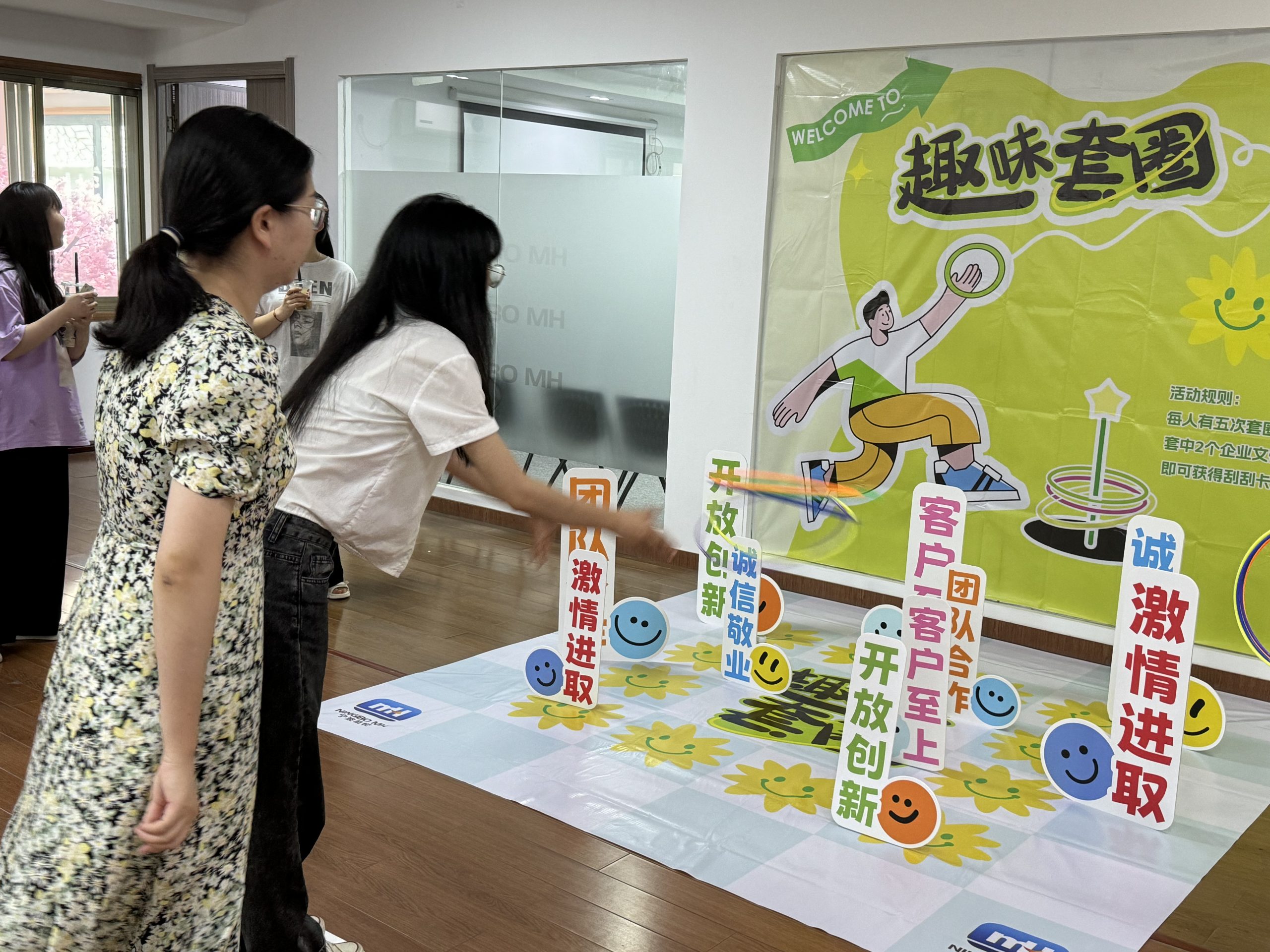 另一側,套圈場地也人頭攢動,印著“客戶至上、團隊合作、開放創新、激情進取、誠信敬業”的萌恒價值觀小立牌就擺放在大家的眼前,每個人有五次套圈的機會,套中兩個即可獲得一張刮刮卡。套圈小游戲讓大家獲得西瓜、蒲扇、棒冰等消暑禮品的同時,也讓萌恒價值觀進一步深入人心,引來小伙伴們頻頻點贊!