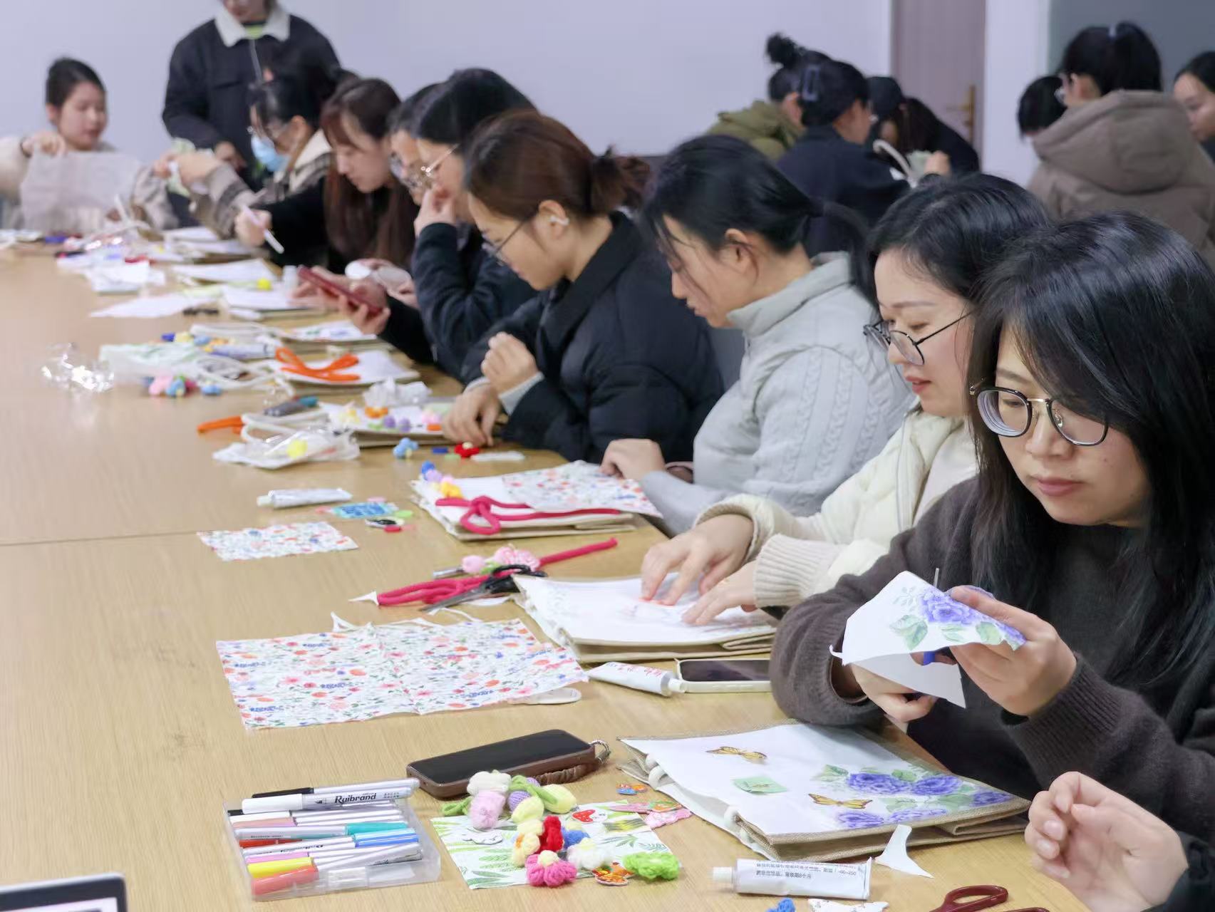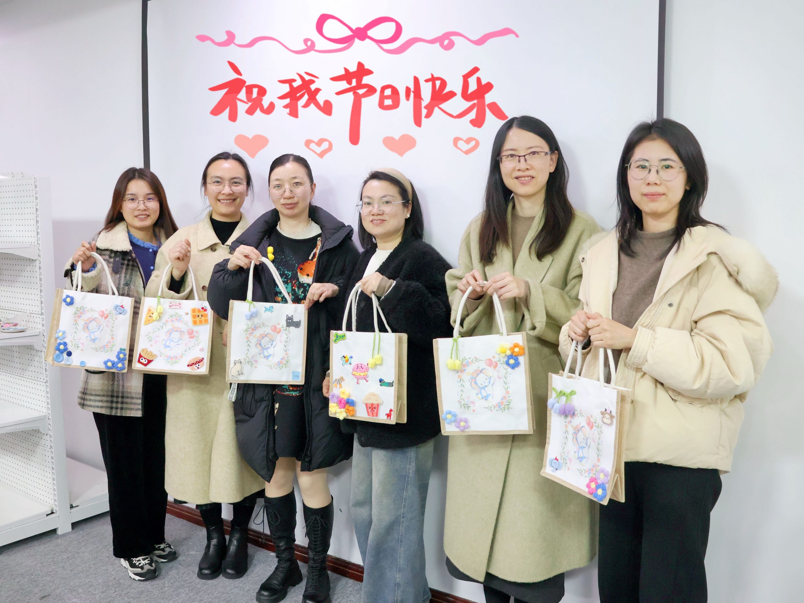 有人將春意貼滿包包,有人用毛線勾勒出自己的名字,有人巧用紐扣與畫筆做出創(chuàng)意花束……每一個帆布包都是獨一無二的作品,就像每一位女性,都擁有屬于自己的風格與光芒。