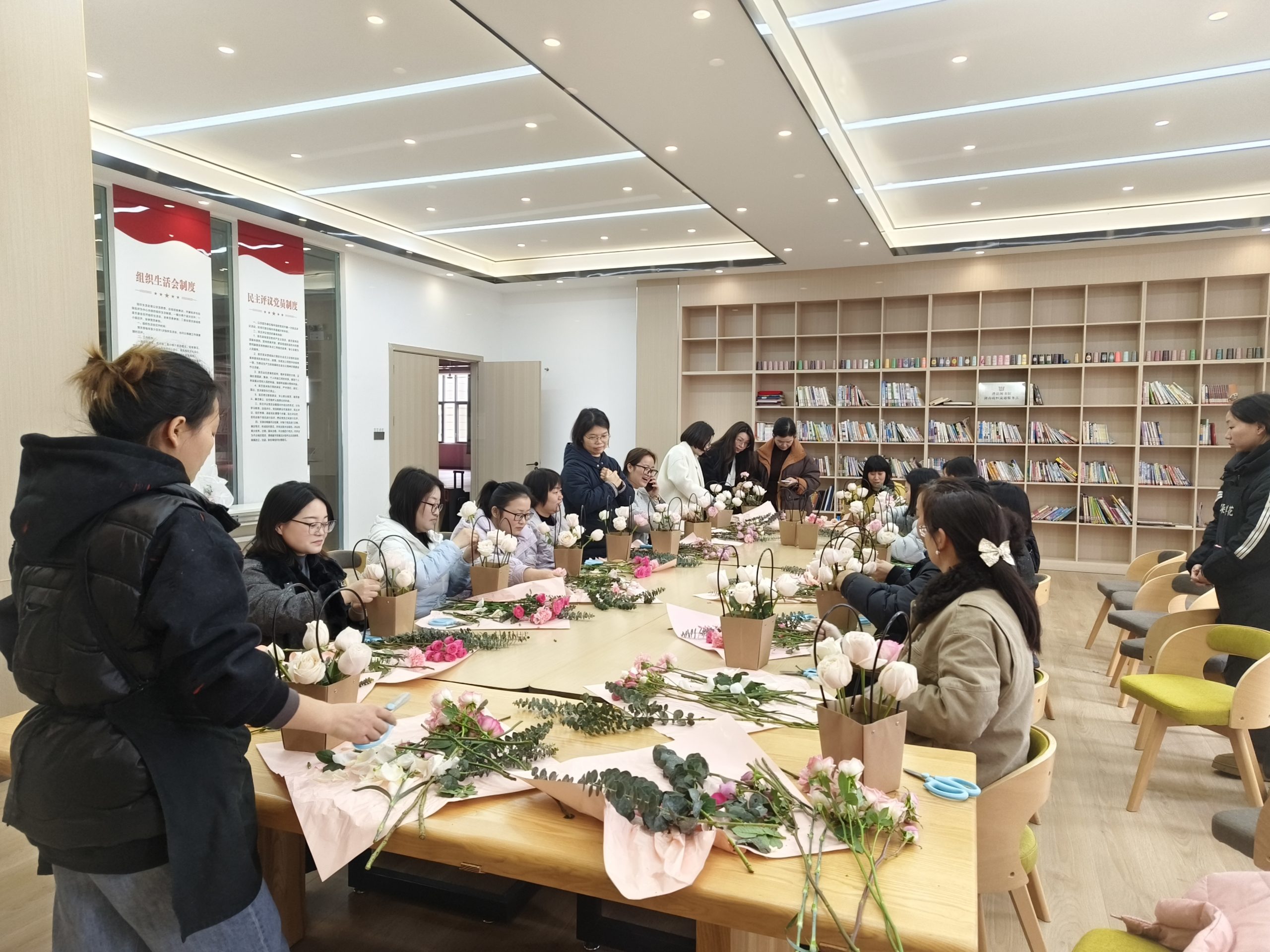 活動現(xiàn)場,專業(yè)花藝師從基礎技法層層深入,細致講解了清葉、剪枝的核心要點,拆解了基礎花卉造型的設計思路,還分步演示了主花、次花與綠葉的搭配技巧,以及整體作品的后期整型方法。除此之外,老師還貼心分享了實用干貨,不僅講解了日常澆水的頻次與方法,更傳授了讓花卉保鮮更久的小竅門,讓大家既學會創(chuàng)作,也懂得養(yǎng)護。