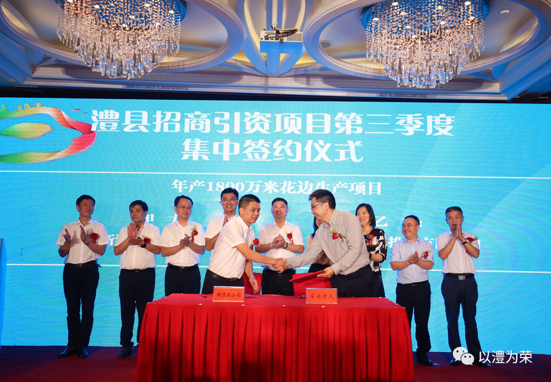 9月8日,澧縣招商引資項目第三季度集中簽約儀式在澧縣瑞高酒店舉行,澧縣縣委書記王兆銘、縣長王啟武等主要縣委、縣政府領導出席簽約儀式。簽約儀式由澧縣常務副縣長李陽主持,副縣長楊波介紹了簽約項目情況,縣高新區和縣自然資源局進行了表態發言。 萌恒花邊生產線作為本次簽約項目之一,集團、花邊產業鏈、湖南萌恒等相關領導參與、見證了簽約,嚴總發表簽約致辭。致辭中,嚴總針對澧縣相關部門在花邊生產線項目落戶澧縣過程中給予的大力支持和高效協助,表示衷心感謝,并介紹了花邊產業情況和未來發展目標。 ...