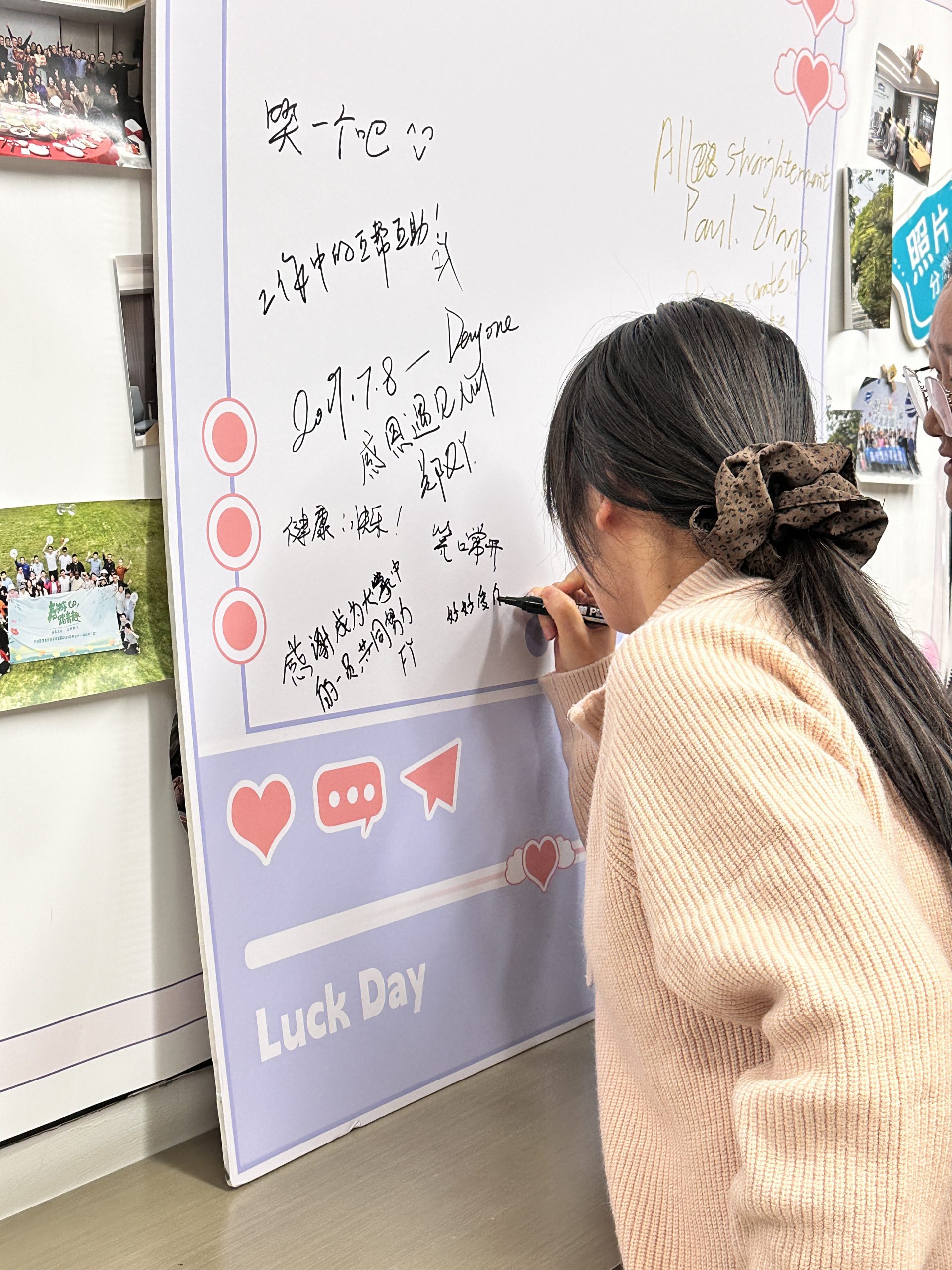 半小時的活動,吸引著越來越多的人圍觀,此起彼伏的笑聲,有不少人舉著手機留下暖心瞬間,連平時敲代碼敲到 “入定” 的程序員都駐足停留。這個感恩節,沒有復雜的流程,只有推瓶子時的輕響、起哄聲里的熱鬧,和全員眼底藏不住的開心——畢竟最暖的感恩,從來都是和這群人一起,哪怕是平凡的日子,也能用行動詮釋友愛的定義。