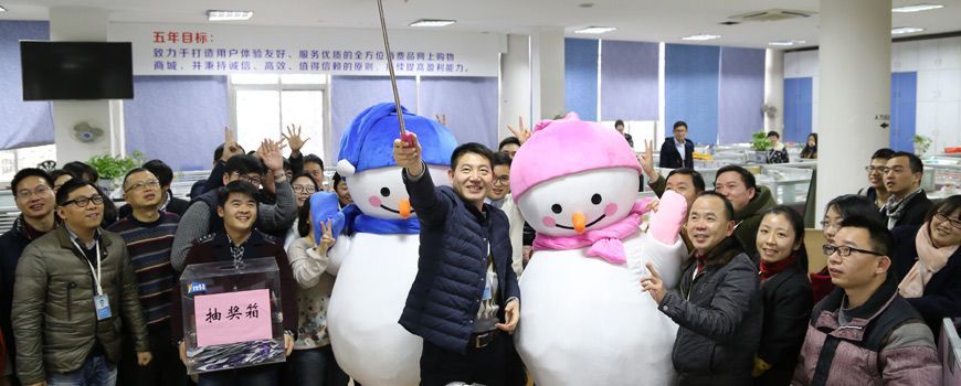 12月25日,兩個超萌巨型雪人公仔空降公貿大樓,為國貿、海外、電商等事業部的同事們送上圣誕節的驚喜,兩位小萌所到之處都能吸引無數粉絲尖叫、合影。 本次活動一共為大家準備了5種可選禮品包括健康禮、舌尖禮、暖心禮、家居禮、甜心禮,每位同事都通過刮獎的方式獲得了公司為他們送上的圣誕驚喜。