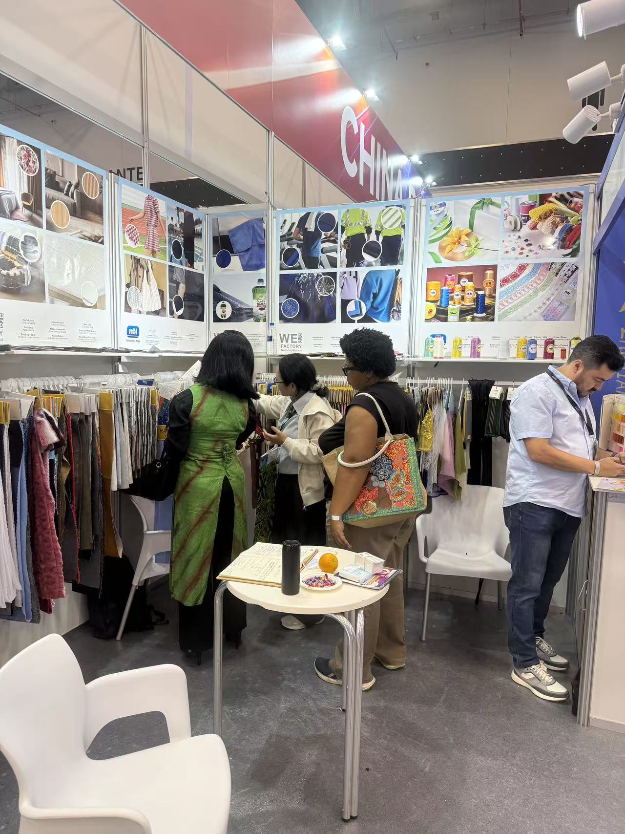 ]]>萌恒國貿(mào)事業(yè)部業(yè)務(wù)三部銷售代表攜公司產(chǎn)品精彩亮相。雖然本屆展會的綜合性特征使得前來洽談的專業(yè)客戶有所分流,但其所具備的區(qū)域輻射效應(yīng)卻為公司帶來了意外的收獲。展會現(xiàn)場,我司展位接待了不少來自哥倫比亞、秘魯、厄瓜多爾等中南美洲國家的客商,展出的線類和沙發(fā)布產(chǎn)品也獲得了廣泛關(guān)注與積極反饋,銷售代表與客戶深入交流,精準挖掘潛在需求,為后續(xù)合作奠定了堅實基礎(chǔ)。